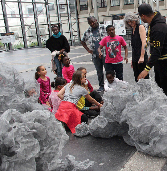 En cherchant à redéfinir le principe d’actualisation du travail plastique dans son moment socio-politique et culturel, tout en prolongeant le projet de mobilité que sous-tendent mes productions en volume, j'ai cherché à ouvrir la dimension plastique à un tissage des imaginaires en prenant en compte des pratiques effectives des publics.